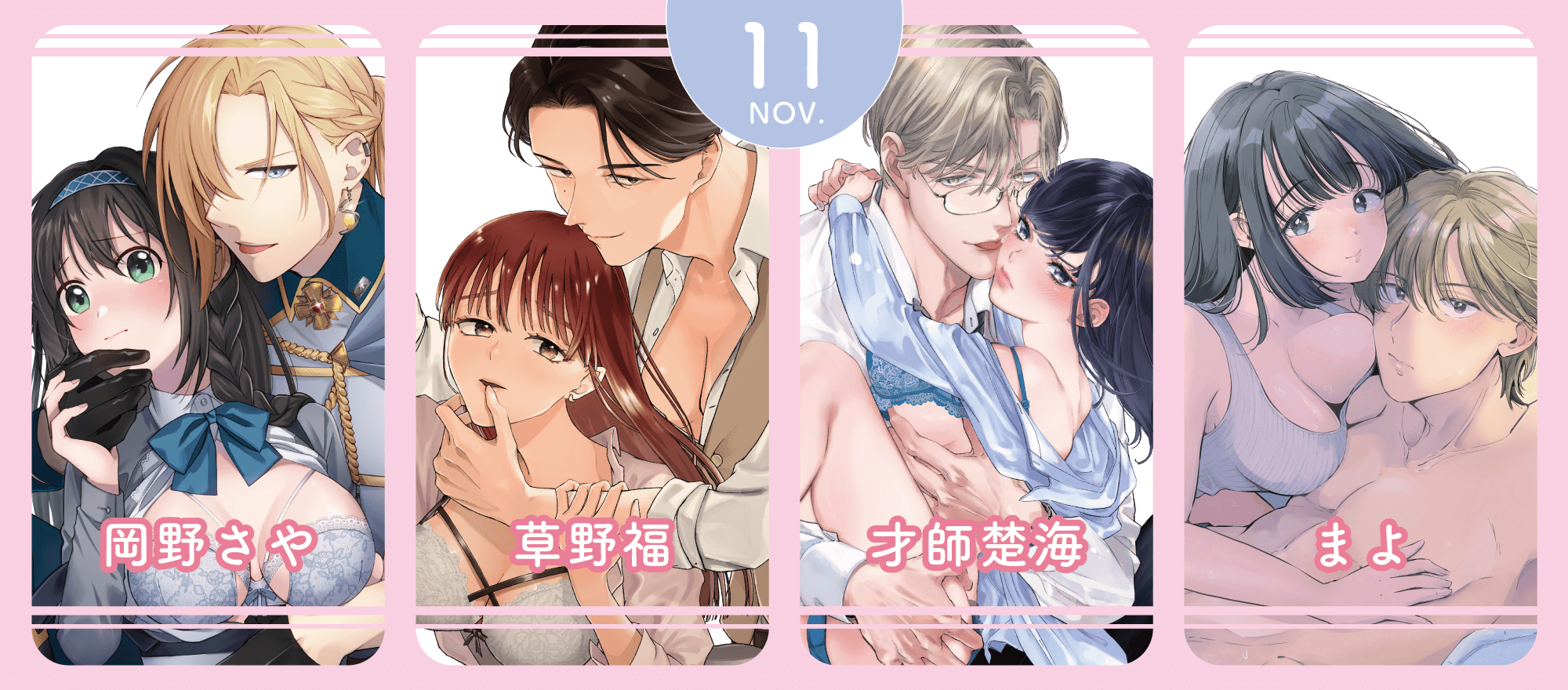Pinkcherie Fes 2025 Autumn 特別単行本割引キャンペーン(11月6日まで)2025年10月31日2025年11月配信のお知らせ2025年10月30日♡𝐏𝐢𝐧𝐤𝐜𝐡𝐞𝐫𝐢𝐞 𝐜𝐨𝐦𝐢𝐜𝐬 既刊フェア2025 開催のお知らせ♡2025年10月17日TLコミックフェア in フロマージュブックス2025年10月10日試し読み上司が私に重課金!? 私がコンカフェ嬢なの、内緒にシてくださいさらだ希望2025年10月24日発売試し読み試し読みアンドロイドは愛の夢をみるか? 4ヒダカリョウ2025年9月25日発売試し読み試し読み執着ドクターは初恋彼女を離してあげない ~雨宮兄弟の歪んだ溺愛~漫画:おのまい 原作:森野じゃむ2025年8月22日発売試し読み試し読み魔力0の異世界転移者は最強騎士様の救世主!? ~英雄の運命は私とのエッチにかかってます~秋生2025年6月26日発売試し読み11月6日配信開始試し読み夫婦未満、レンアイ以上。 天然床上手な新妻はハイスペ(+微ヘタレ)夫を翻弄しますまよ「…我慢してたのに」風邪を引いた芙由を心配する春暁は、看病中の“春暁さんが欲しい”の言葉に思わず彼女を押し倒し…!試し読み11月6日配信開始試し読みいじわる上司の環さん 憧れ上司のウラの顔は、私泣かせの飢えた暴君才師楚海環さんが海外転勤!?何も言わず離れていってしまうことにショックを隠せない冬香。そんなとき、環から電話がかかってきて…試し読み11月6日配信開始試し読み君のカラダで教えて欲しい –アブノーマルすぎる作家と疑似恋愛始めました–草野福総一郎の新たな一面を知り、少しずつ惹かれ始めていることを自覚する伊織。そんな中、総一郎から突然呼び出されてーー?試し読み11月6日配信開始試し読み盲愛軍師は専属メイドを花嫁に希う 重たい愛で、奥まで貫く一途な秘め事岡野さや連れ去られたエルシャを追い、馬車をとらえるハインツ。無事に助け出せるのか!? 軍師とメイド、身分違いの恋の行方はーー試し読み10月6日配信開始試し読み呪われてもキミを愛す。~発情兎は四六時中SEXがシたい~漫画:堂夏ちくわ 原作:森野じゃむ呪いを解くためのもう一つの方法を聞かされた小春。どうしても汐音を助けたい彼女がとった行動とは…。想いあふれる最終回!試し読み9月6日配信開始試し読み花に愛咬 最強従者とイく旅路青日晴過去を知り、お互いの望みを伝え合い、さらに深まったふたりの関係。ハラハラどきどき主従旅、幸せいっぱいの最終話♪試し読み9月6日配信開始試し読みワケあり紳士は激辛好きOLを×××で攻めて、愛でてやまない夏都みや(特別で大切で。それと同じくらい、めちゃくちゃにしたい)誤解が解け、保坂のガマン爆発!?攻められるほど愛を感じる最終回!試し読み9月6日配信開始試し読み求愛婚 〜18年振りに再会した御曹司に毎晩イキすぎる程愛されています〜和 杏樹ーー僕の親友です。真仲が蓮の親友であったと知った葵衣は、仕事中いつもと違う様子の真仲に対してとあることを聞いて…?試し読み8月6日配信開始試し読みシたいこと全部叶えてやるよ。 ガテン系男子に獣SEX仕込まれてます漫画:辰日ろし 原作:森野じゃむ大智が事故に!あらためて春子と過ごせる幸せを噛み締める大智。「今度は大智の願いを叶えたい」という春子に激しくも甘く求め…試し読み8月6日配信開始試し読み今夜はどっちの“オレ”に抱かれたい? 上司がWでエロ全開に迫ってきます!!江田まり壱哉に一目惚れした女性幽霊が現れ、且つ社内でも彼がモテる光景を目にし嫉妬してしまう志保。どうにか平常心を保とうとするが… 試し読み8月6日配信開始試し読み初恋焦がして。 こじらせ幼なじみに好きってイッてほしい甘露かんろ先輩の助言で引っかかっていた思いを伝えた光。しかしその言葉が透夜の琴線に触れてしまった!? 詰め寄られた光も記憶が蘇り…試し読み6月20日配信開始試し読み絶対抗えない甘い命令【Dom/Subユニバース】原作:兎山もなか 漫画:poco.敵との決着、そして星乃とのこれから。夜鷹が最後に選んだのは、すべてを手放してでも守りたい人のための“ある計画”で…?試し読み6月20日配信開始試し読みヤバ愛(あい)淫ストラクターアルジェント瀬名と凪は同棲中。瀬名の愛が重すぎてエッチ三昧になってしまい、凪は体力の限界…!見かねた岬が手渡したものとは?試し読み6月20日配信開始試し読みハイスペ幼馴染の溺愛策略 〜ハジメテの快感は全部、彼に教えられました〜はいど真摯な告白を受け、潤と付き合うことになった唯月。会社では平常心を保とうとするが、彼に抱かれた時のことを思い出してしまい…試し読み6月20日配信開始試し読み転生先はR18乙女ゲームですが、初夜の相手が推しじゃないなんて聞いてません! −悪役軍師と愛欲夫婦(仮)生活−むいこ「今夜は寝かせないからな…」一晩中甘い時間を過ごした翌日、レオンハルトは友里子をとある場所へ連れて行き…?試し読み5月20日配信開始試し読み孕婚契約。〜今日から1年、寡黙な許婚様に毎晩奥まで注がれます〜黒宮ゆねこ「九条家を、一紗さんを利用してたんです…っ」己の過去と許嫁を引き