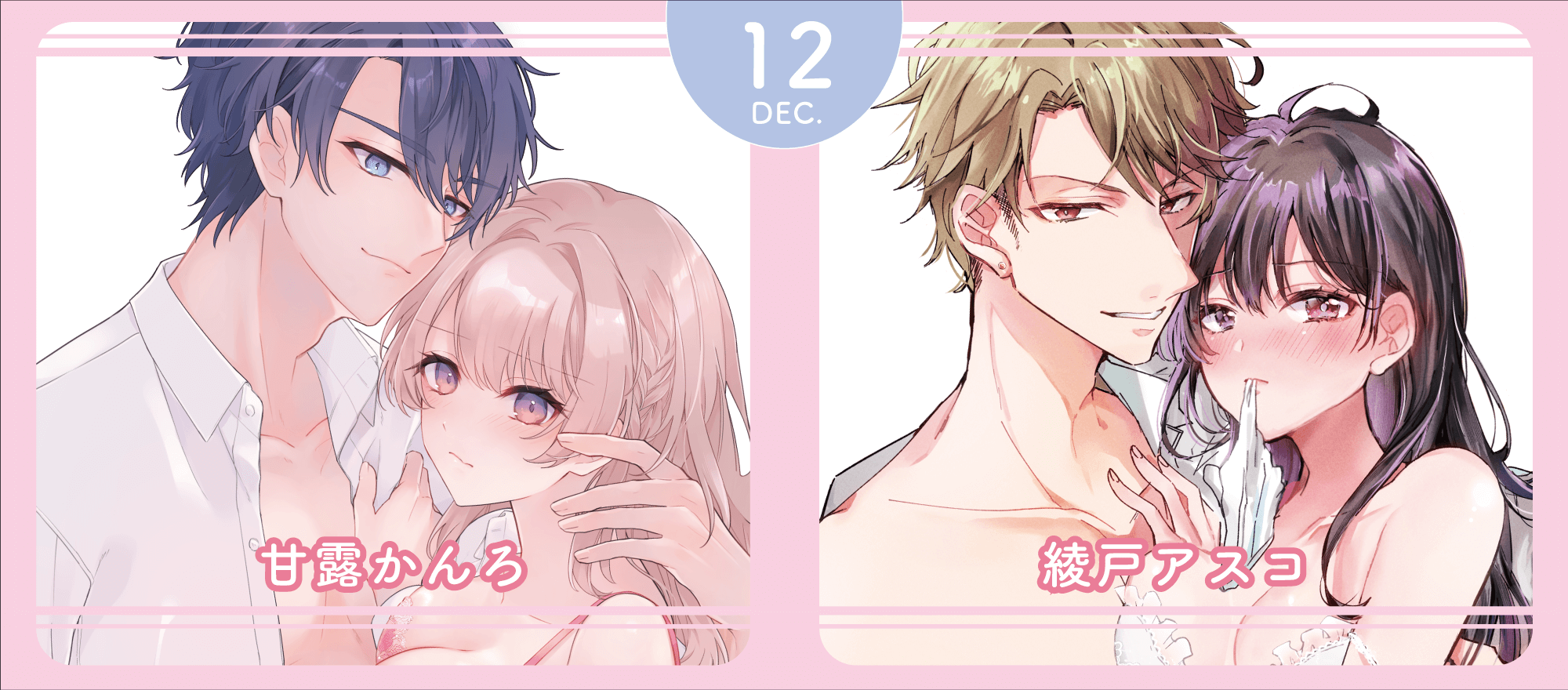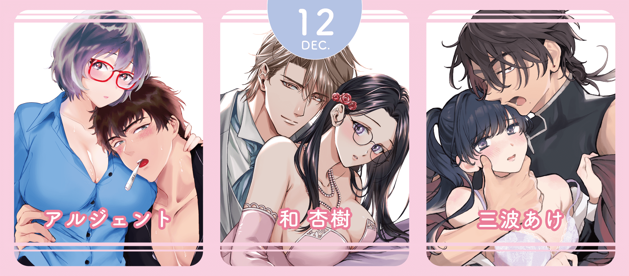 12月25日配信♡辰日ろし先生 森野じゃむ先生『シたいこと全部叶えてやるよ。 ガテン系男子に獣SEX仕込まれてます』特典情報2025年12月4日2025年12月配信のお知らせ2025年11月28日今夜はどっちの“オレ”に抱かれたい? 上司がWでエロ全開に迫ってきます!! ♡R18版配信2025年11月20日11月27日発売♡江田まり先生『今夜はどっちの“オレ”に抱かれたい? 上司がWでエロ全開に迫ってきます!! 2』特典情報2025年11月7日試し読みシたいこと全部叶えてやるよ。 ガテン系男子に獣SEX仕込まれてます漫画:辰日ろし 原作:森野じゃむ2025年12月25日発売試し読み試し読み今夜はどっちの“オレ”に抱かれたい? 上司がWでエロ全開に迫ってきます!! 2江田まり2025年11月27日発売試し読み試し読み上司が私に重課金!? 私がコンカフェ嬢なの、内緒にシてくださいさらだ希望2025年10月24日発売試し読み試し読みアンドロイドは愛の夢をみるか? 4ヒダカリョウ2025年9月25日発売試し読み12月6日配信開始試し読み攻略対象は性悪エッチな妖怪様 〜惚れさせるはずが、イジワルに抱かれて濡らされて〜三波あけ生徒が受けた呪いの調査の為、カガリと街に下りることになった霖。すると、そこではちょうどお祭りが開かれていてーー試し読み12月6日配信開始試し読み求愛婚 〜18年振りに再会した御曹司に毎晩イキすぎる程愛されています〜和 杏樹突然現れた真仲と蓮が一触即発になりかけている中、そこにやって来たのはーー18年分の愛を感じる、幸せ溢れる最終回!試し読み12月6日配信開始試し読みヤバ愛(あい)淫ストラクターアルジェント同棲を始めてから、エッチのしすぎでダウンしてしまったのは…凪じゃなくて瀬名!?看病しようとしたけれど、二人の甘い時間は止まらなくて…!試し読み12月6日配信開始試し読み(元)俺様王子の執愛からは逃れられない ~元執事の私、今世ではカラダごと愛される運命です~綾戸アスコ社長に仕えたい、そばにいたいーーそう願うこころは、自分が如月のためにできることを考えて大胆な行動に出るが…?試し読み12月6日配信開始試し読み初恋焦がして。 こじらせ幼なじみに好きってイッてほしい甘露かんろ「また勘違いされちゃう」「好きでもなんでもない」 長いすれ違いがついにーー!? 好きって言いたい、言われたい、濃密エッチな最終回。試し読み11月6日配信開始試し読み盲愛軍師は専属メイドを花嫁に希う 重たい愛で、奥まで貫く一途な秘め事岡野さや連れ去られたエルシャを追い、馬車をとらえるハインツ。無事に助け出せるのか!? 軍師とメイド、身分違いの恋の行方はーー試し読み11月6日配信開始試し読み夫婦未満、レンアイ以上。 天然床上手な新妻はハイスペ(+微ヘタレ)夫を翻弄しますまよ「…我慢してたのに」風邪を引いた芙由を心配する春暁は、看病中の“春暁さんが欲しい”の言葉に思わず彼女を押し倒し…!試し読み11月6日配信開始試し読みいじわる上司の環さん 憧れ上司のウラの顔は、私泣かせの飢えた暴君才師楚海環さんが海外転勤!?何も言わず離れていってしまうことにショックを隠せない冬香。そんなとき、環から電話がかかってきて…試し読み11月6日配信開始試し読み君のカラダで教えて欲しい –アブノーマルすぎる作家と疑似恋愛始めました–草野福総一郎の新たな一面を知り、少しずつ惹かれ始めていることを自覚する伊織。そんな中、総一郎から突然呼び出されてーー?試し読み10月6日配信開始試し読み呪われてもキミを愛す。~発情兎は四六時中SEXがシたい~漫画:堂夏ちくわ 原作:森野じゃむ呪いを解くためのもう一つの方法を聞かされた小春。どうしても汐音を助けたい彼女がとった行動とは…。想いあふれる最終回!試し読み9月6日配信開始試し読み花に愛咬 最強従者とイく旅路青日晴過去を知り、お互いの望みを伝え合い、さらに深まったふたりの関係。ハラハラどきどき主従旅、幸せいっぱいの最終話♪試し読み9月6日配信開始試し読みワケあり紳士は激辛好きOLを×××で攻めて、愛でてやまない夏都みや(特別で大切で。それと同じくらい、めちゃくちゃにしたい)誤解が解け、保坂のガマン爆発!?攻められるほど愛を感じる最終回!試し読み8月6日配信開始試し読み今夜はどっちの“オレ”に抱かれたい? 上司がWでエロ全開に迫ってきます!!江田まり壱哉に一目惚れした女性幽霊が現れ、且つ社内でも彼がモテる光景を目にし嫉妬してしまう志保。どうにか平常心を保とうとするが… 試し読み8月6日配信開始試し読みシたいこと全部叶えてやるよ。 ガテン系男子に獣SEX仕込まれてます漫画:辰日ろし 原作:森野じゃむ大智が事故に!あらためて春子と過ごせる幸せを噛み締める大智。「今度は大智の願いを叶えたい」という春子に激しくも甘く求め…試し読み6月20日配信開始試し読み絶対抗えない甘い命令【Dom/Subユニバース】原作:兎山もなか 漫画:poco.敵との決着、そして星乃とのこれから。夜鷹が最後に選んだのは、すべてを手放してでも守りたい人のための“ある計画”で…?試し読み6月20日配信開始試し
